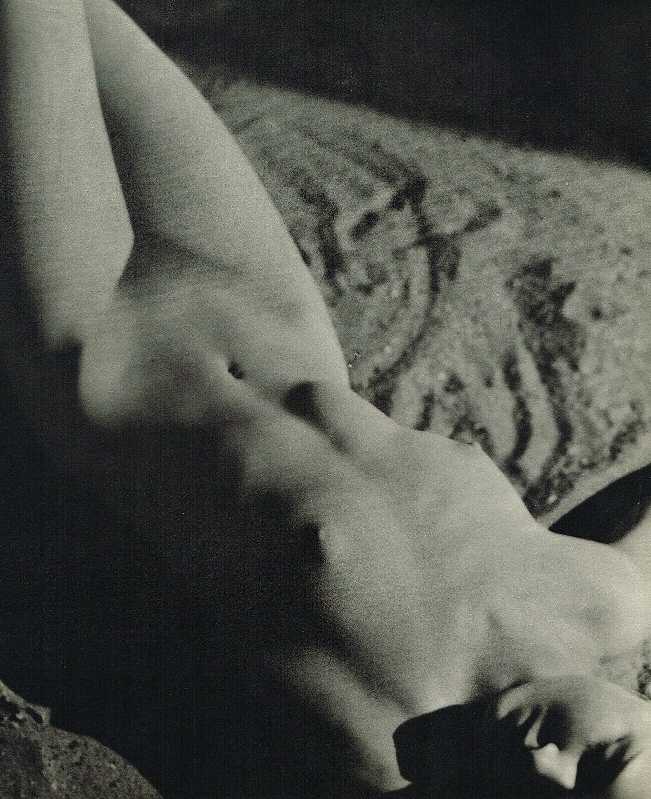 John Everard :: Nude torso [lying on the sand], ca. 1930s. Photogravure| src vintageads on eBay