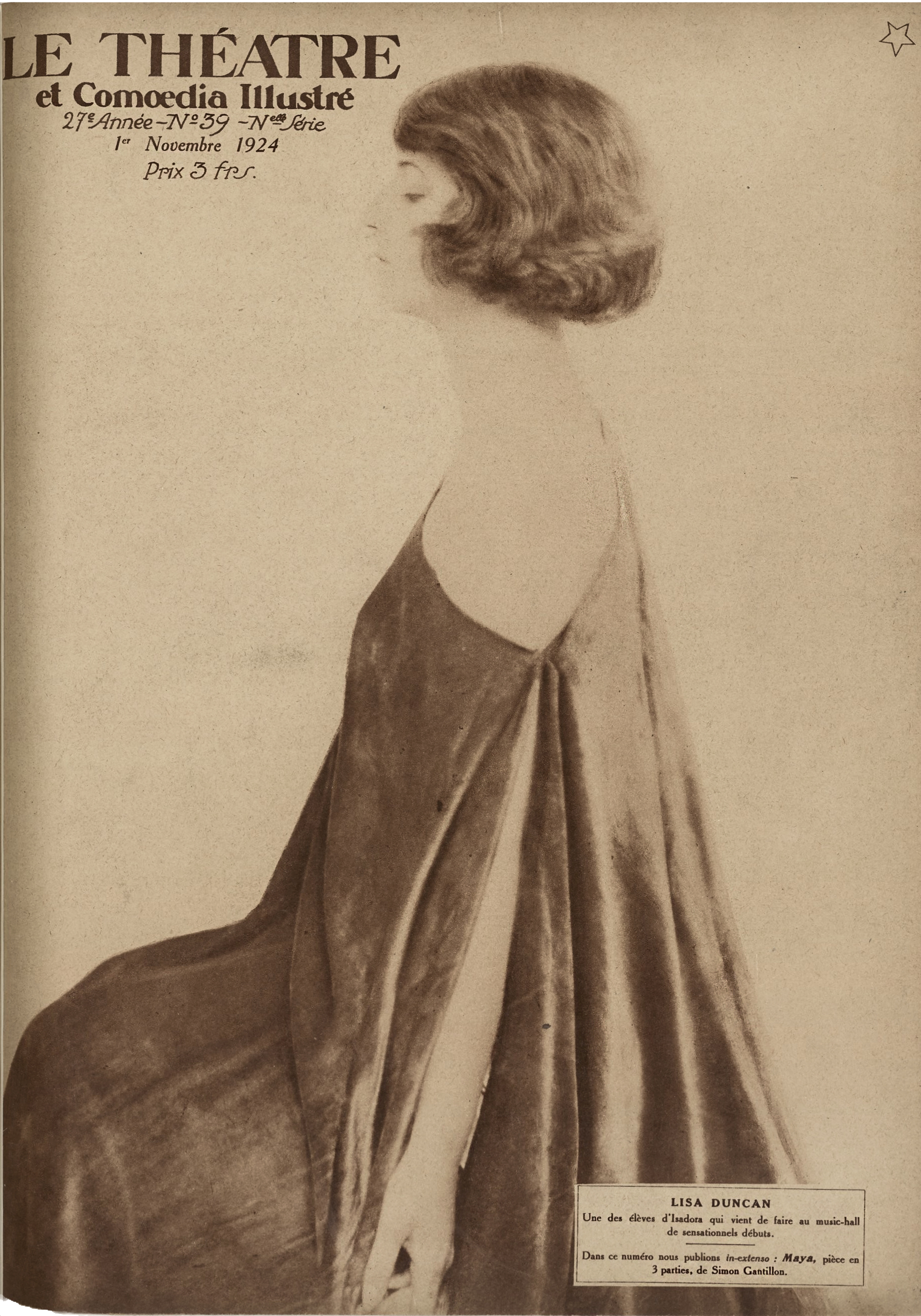 Lisa Duncan. One of Isadora’s students who has just made a sensational debut at the music hall. Original: Une des élèves d Isadora qui vient de faire au music-hall de sensationnels débuts. Le Théâtre et Comœdia illustré, Novembre 1924. | src BnF ~ Gallica