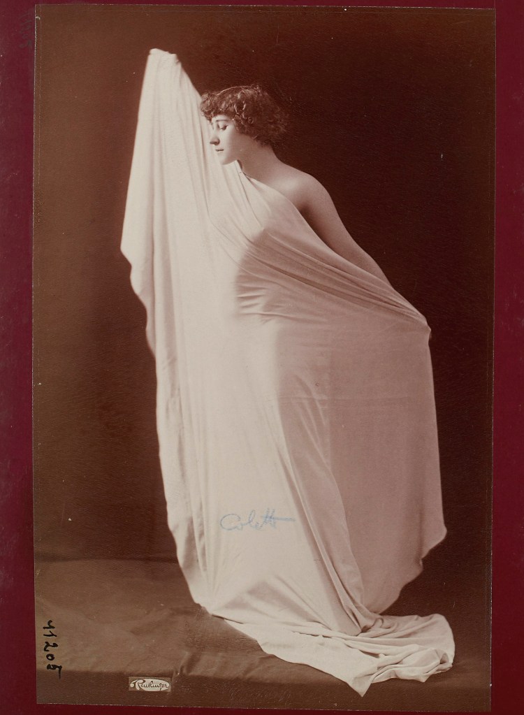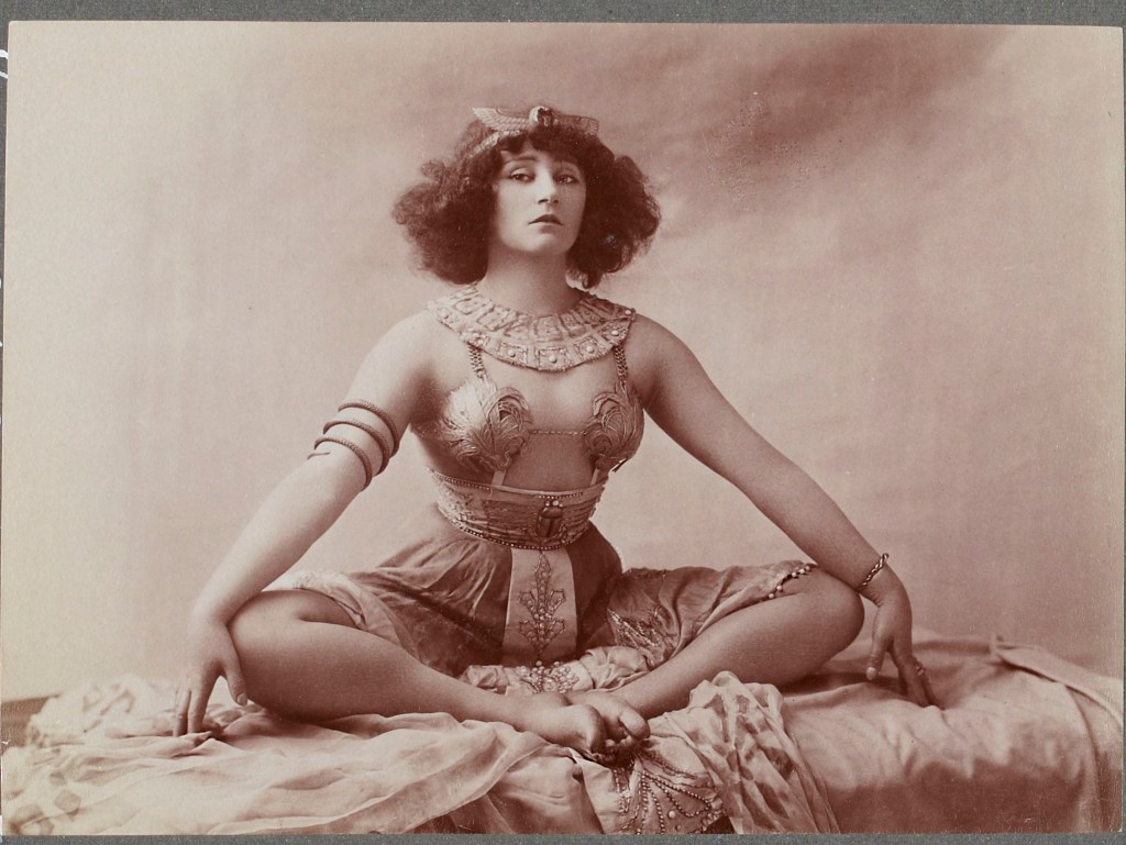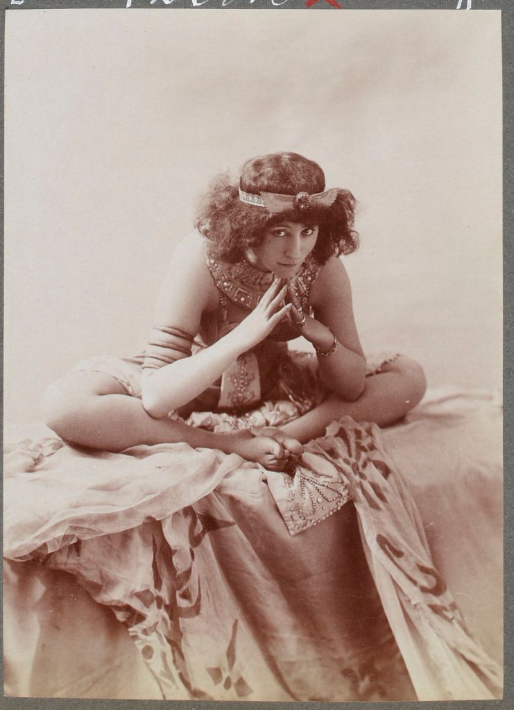 Léopold-Émile Reutlinger :: Colette Willy / Sidonie-Gabrielle Colette dans la pantomine «Rêve d’Égypte» au Moulin Rouge en Janvier 1907. | src Album Reutlinger de portraits divers @ BnF