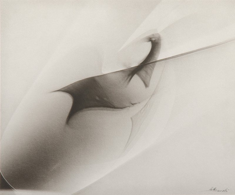 Though best known for her portraits of famous people, Jacobi also experimented with abstraction in her “photogenics.” She described making these photograms (photographs made without a camera) as drawing on photo-sensitized paper by moving the light source. While photography is most often used to document the external world, Jacobi’s abstractions are a vehicle for imagination.