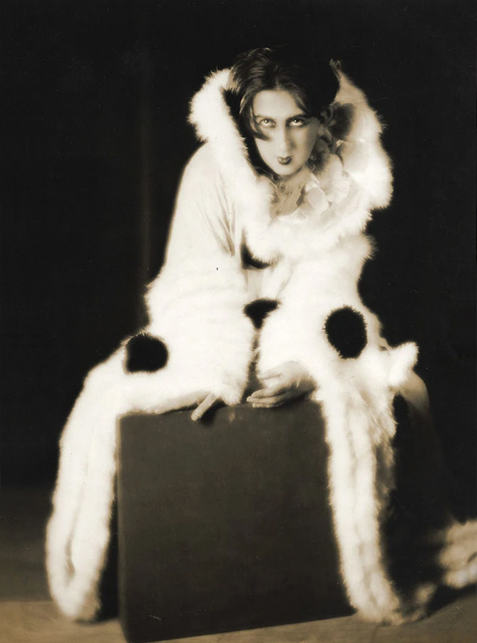 Studio Lorelle (Lucien Lorelle) :: Modèle posant dans un manteau de fourrure blanc à pois noirs. Paris, 1925-1930. | Model posing in a white fur coat with black dots, Paris, 1925-1930. | src diktats