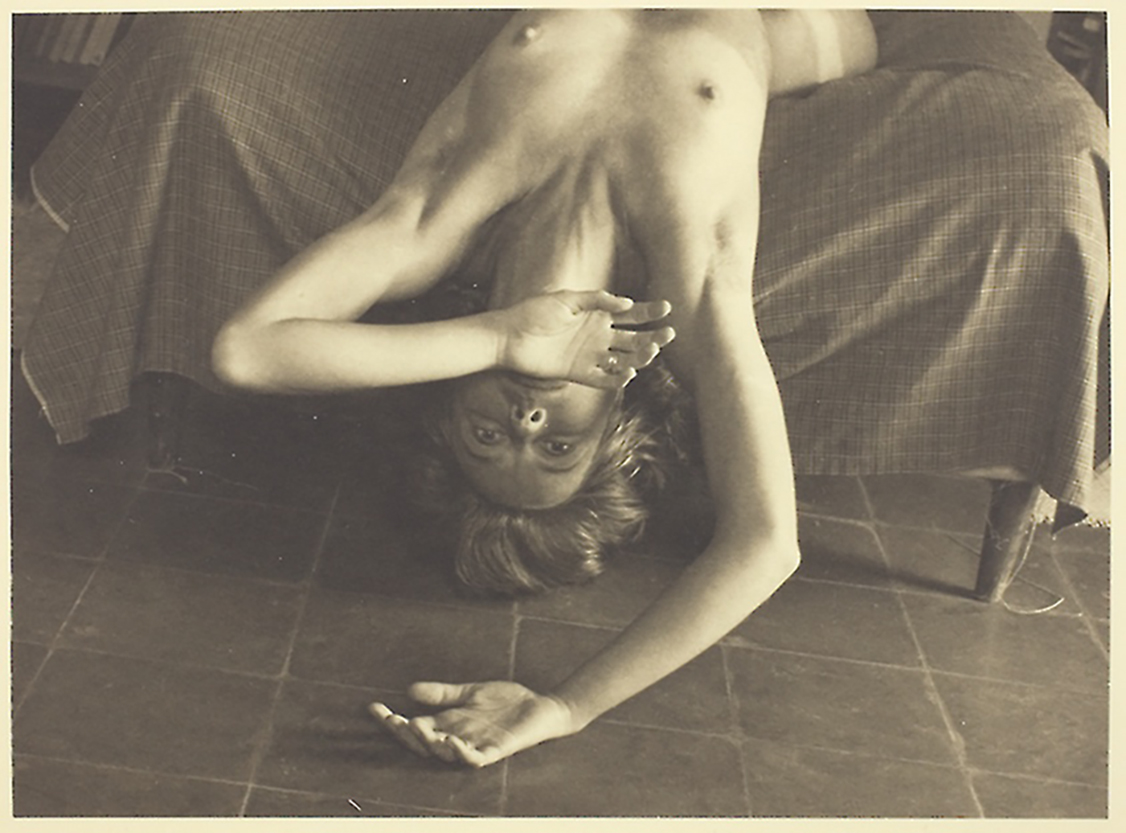 Manuel Alvarez Bravo directed this model to pose with her head dramatically turned upward. The young woman’s unnatural posture encouraged the presumably male viewer to gaze freely at her eroticized form; her averted face denied her the opportunity to return and confirm the gaze. This pose belongs to an academic tradition of representing women as objects of desire.