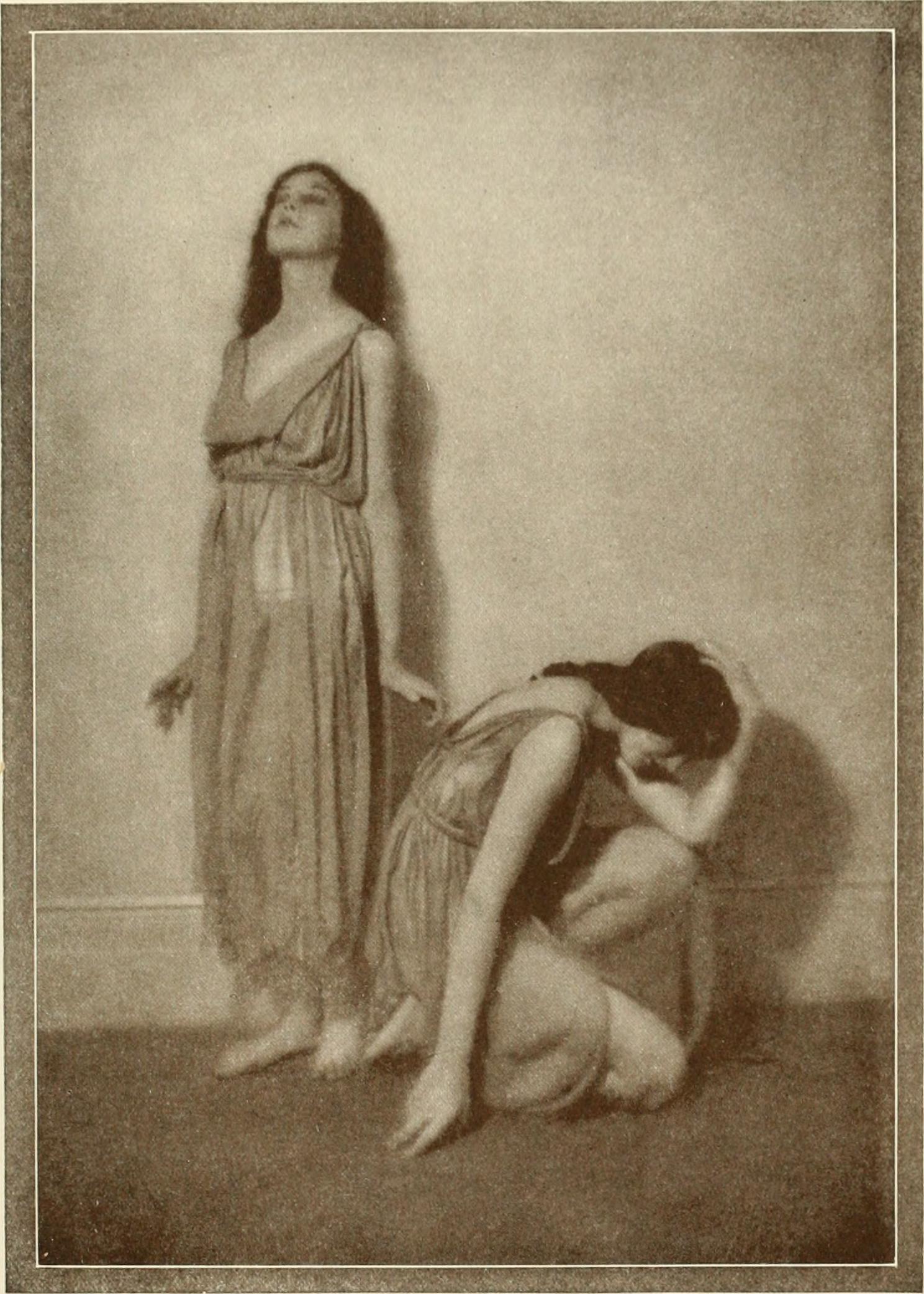“Unfolding, as though giving or about to receive — an idea of petals opening to exchange the flower’s perfume for the warmth of the sun’s rays.” From ‘Dancing with Helen Moller’, 1918. Page 26. University of California Libraries. | src internet archive“A gentle and pleasantly expectant expression of aspiration — the lines of the entire body, arms, neck and head, having an upward tendency.” From ‘Dancing with Helen Moller’, 1918. Page 94. University of California Libraries. | src internet archive“An expression of pleasurable relaxation pervading the entire body— a complete reaction to influences that are pervasive in their sweetness and charm.” From ‘Dancing with Helen Moller’, 1918. Page 94. University of California Libraries. | src internet archive“The graceful management of draperies is an important requisite in Greek dancing. When the robe is voluminous, as in this instance, its manipulation demands considerable skill.” From ‘Dancing with Helen Moller’, 1918. Page 44. University of California Libraries. | src internet archive“Classic perfection of repose, with one limb bearing the body’s weight while the other, with the knee flexed, preserves balance, is one of the Greek dancer’s earliest achievements.” From ‘Dancing with Helen Moller’, 1918. Page 44. University of California Libraries. | src internet archive“Different individual reactions to the same sense of calamity -one erect as though petrified, the other crushed by despair; neither imitative, but each creative.” Helen Moller and Curtis Dunham :: From ‘Dancing with Helen Moller; her own statement of her philosophy and practice and teaching formed upon the classic Greek model, and adapted to meet the aesthetic and hygienic needs of to-day’, 1918. Page 40. University of California Libraries. | src internet archive