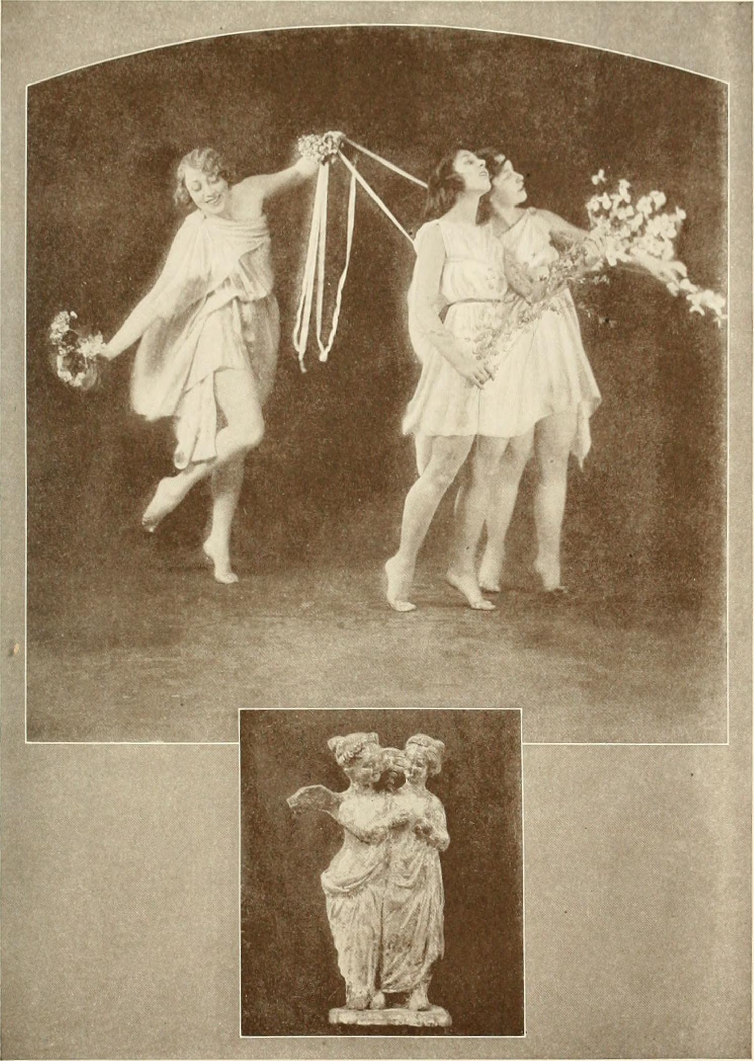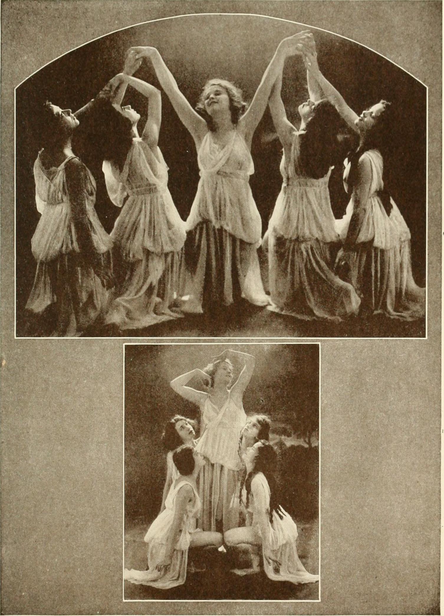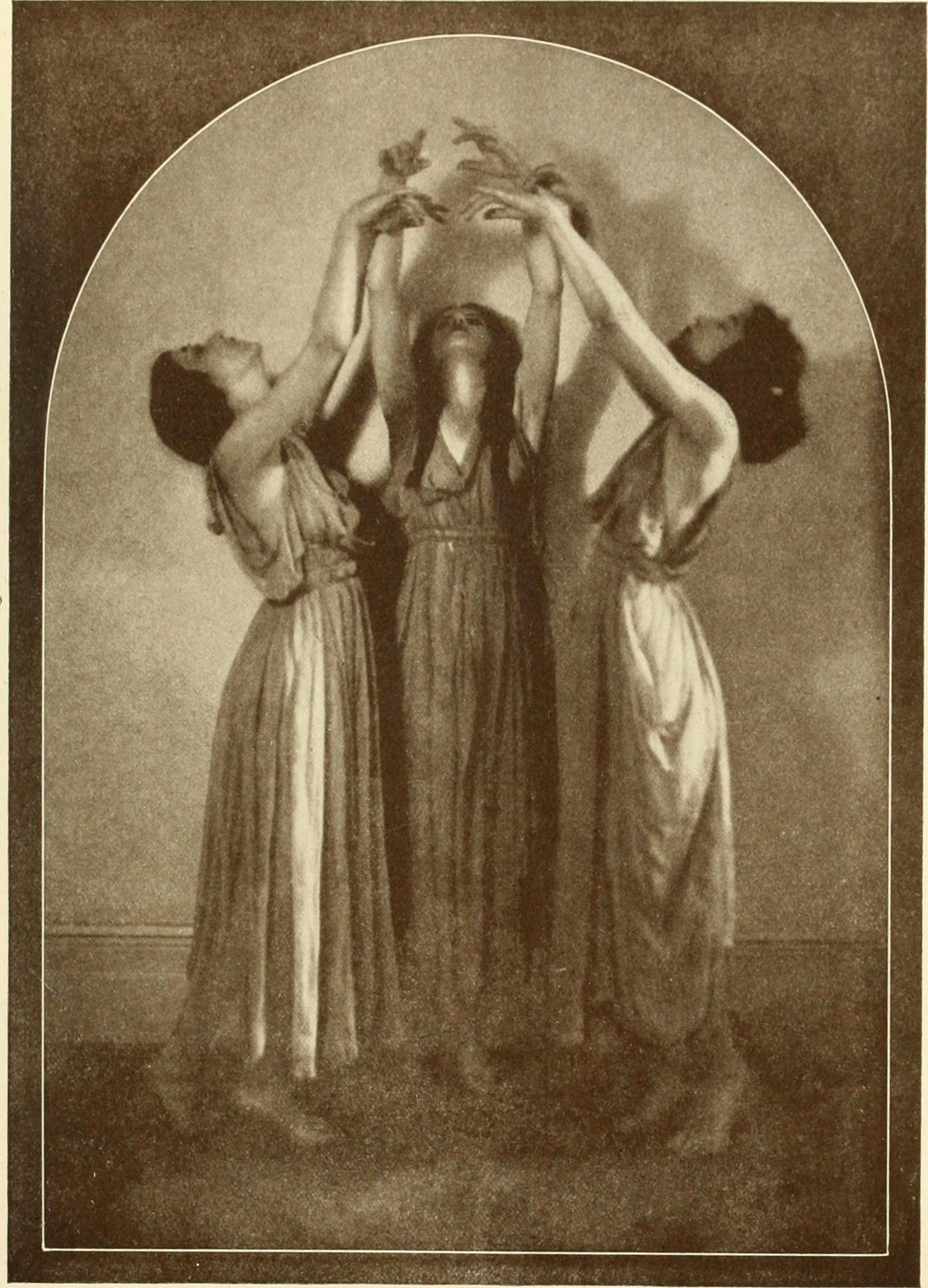 “The idea of Pan inspires the Greek dancer with a charming variety of interpretations of a lyrical, as well as of a sprightly and mischievous, character.” From ‘Dancing with Helen Möller’, 1918. Page 110. University of California Libraries. | src internet archive“An adaptation of the classic idea of Pan — three manifestations emphasizing the gay and mischievous attributes of that minor deity of the Arcadian woodland.” From ‘Dancing with Helen Möller’, 1918. Page 28. University of California Libraries. | src internet archive“All true physical expression has its generative centre in the region of the heart, the same as the emotions which actuate it. Movements flowing from any other source are aesthetically futile.” From ‘Dancing with Helen Moller’, 1918. Page 96. University of California Libraries. | src internet archive“Both of these Bacchante figures exhibit original interpretations in which beauty of line is sustained in connection with appropriate gestures and facial expression.” From ‘Dancing with Helen Moller’, 1918. Page 81. University of California Libraries. | src internet archive“Bacchante. Showing the moment of lustful anticipation of delight in the intoxicating product of the fruit — as though hardly to be restrained from seizing and devouring at once.” From ‘Dancing with Helen Moller’, 1918. Page 102. University of California Libraries. | src internet archive“Woodland interpretation. The ocean-born Aphrodite being adorned by Goddesses of the Seasons for her first appearance among her peers on Olympus.” Helen Moller and Curtis Dunham :: ‘Dancing with Helen Moller; her own statement of her philosophy and practice and teaching formed upon the classic Greek model, and adapted to meet the aesthetic and hygienic needs of to-day’, 1918. Page 112. University of California Libraries. | src internet archive