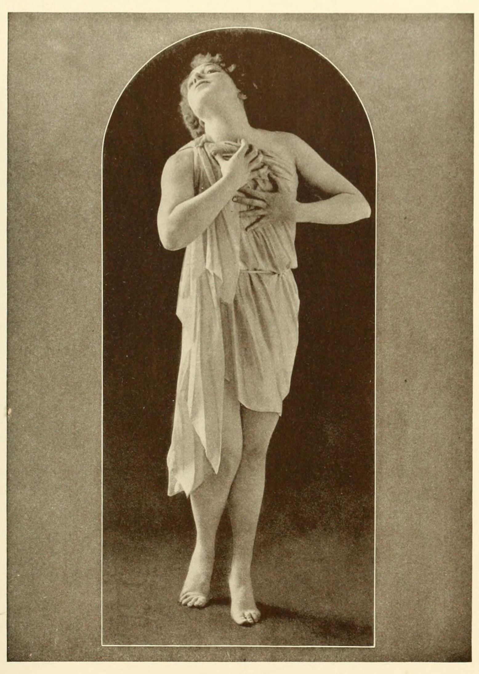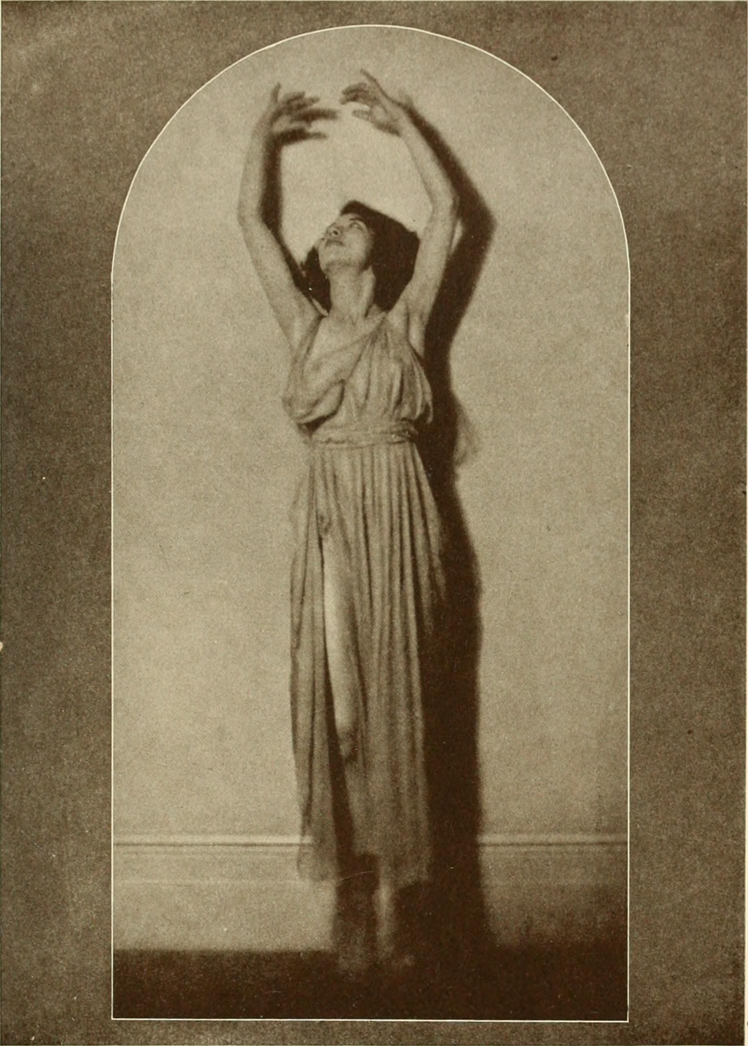 “Votive incense, as from a novice to the Priestess of the Temple — an attitude of graceful humility combined with pride in serving.” From ‘Dancing with Helen Moller’, 1918. Page 62. University of California Libraries. | src internet archive“Expressing wistful expectation — the hands in an upward receptive gesture and the countenance as of hope for some yearned-for gift from above.” From ‘Dancing with Helen Moller’, 1918. Page 22. University of California Libraries. | src internet archive“Atalanta. Depicting the classical moment of the most intense physical and mental concentration upon two opposing motives — to win the race, yet pause to seize the prize.” From ‘Dancing with Helen Moller’, 1918. Page 24. University of California Libraries. | src internet archive“Example of a very young dancer unconsciously coordinating movements of arms and torso with remarkably true and forceful expression of countenance.” From ‘Dancing with Helen Moller’, 1918. Page 38. University of California Libraries. | src internet archive “Children are quick to feel the impulse to rise upon the ball of the foot even when that limb is sustaining the body’s entire weight — one of the principal requisites of Greek dancing.” From ‘Dancing with Helen Moller’, 1918. Page 32. University of California Libraries. | src internet archive“Representing joyous abandonment to an impulse of Nature’s gently persuasive mood — as of floating forward borne upon a Summer breeze.” From ‘Dancing with Helen Moller’, 1918. Page 90. University of California Libraries. | src internet archiveArms outstretched, and raised together, in movements which avoid unaesthetic angles, even in the energetic action shown on the left. The open, raised bust in the large figure illustrates the hygienic value of adhering to the heart centre of all true physical expression.” Helen Moller and Curtis Dunham :: From ‘Dancing with Helen Moller; her own statement of her philosophy and practice and teaching formed upon the classic Greek model, and adapted to meet the aesthetic and hygienic needs of to-day’, 1918. Page 92. University of California Libraries. | src internet archive
