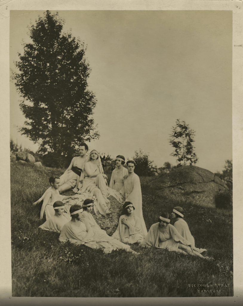 Nickolas Muray :: In the summer of 1916 Martha Graham began her dance studies at The Denishawn School of Dance and Related Arts in Los Angeles. In the photograph Ted Shawn and Ruth St. Denis sit atop the rock. Martha is seated second from the right. (late 1910s-early 1920s). | src Martha Graham Center of Contemporary Dance
