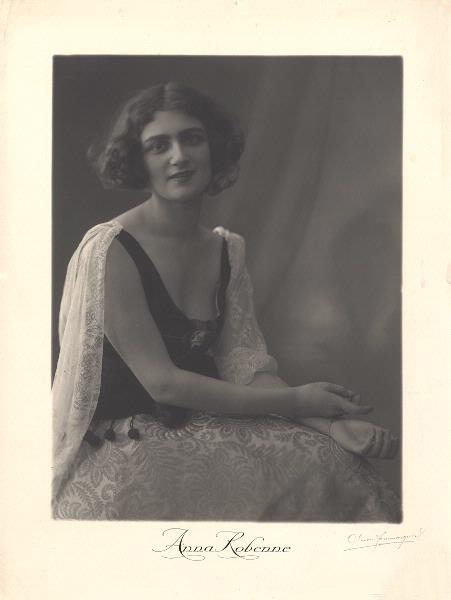 Russian dancer Anna Robenne in “Mot ljuset” [Towards the Light]. | image src Teaterhistoriska arkive | alternative renditionAnna Robenne (Anna Ohman) in “Mot Ijuset” (Towards the Light), ca. 1920. Photo: Olsson & Hammarqvist (Olsson’s name has been deleted from one of the pictures in the series). [annotated on verso: Nr. 6. “Mot ljuset”] | image src Göteborgs stadsmuseum