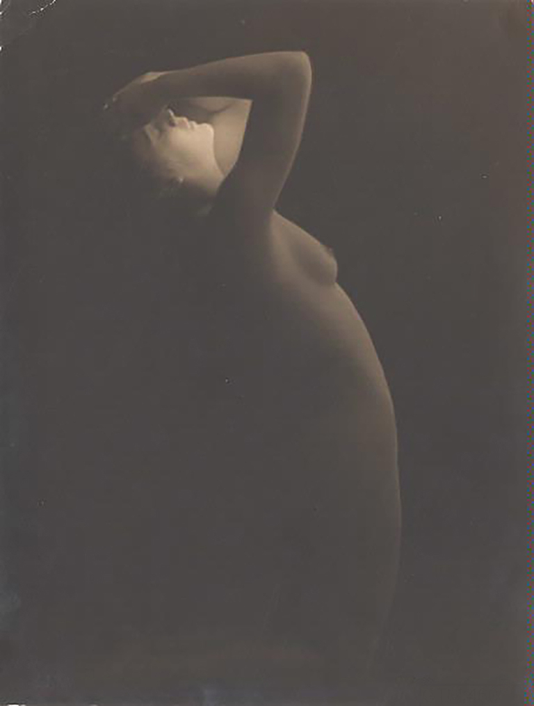 Russian dancer Anna Robenne in “Mot ljuset” [Towards the Light]. The picture shows how Robenne took an active part in the typical trend of the time. Both Finnish and American material contain traces that indicate that nude dancing was an important component of her broad repertoire. Photographer: Hammarqvist (Olsson’s name has been deleted on one of the pictures in the series). Image source: Theater History Archive, Gothenburg City Museum via I avantgardets skugga by Rikard Hoogland (Published by Gothenburg University)