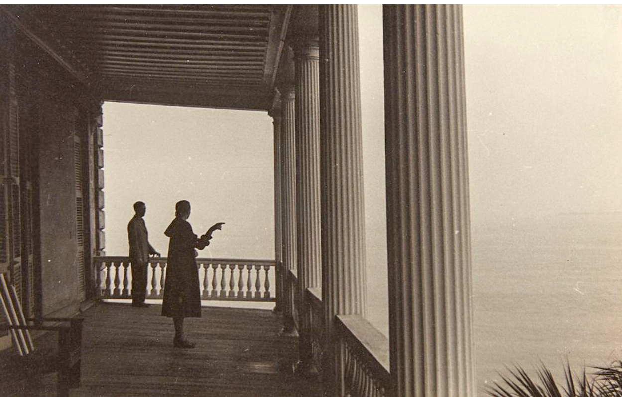Pa Ja Ma Group :: Paul Cadmus (1904-1999), Jared French (1905-1987), and Margaret Hoening French (1889-1973). Photograph titled “Margaret French and Paul Cadmus, Charleston”, depicting Cadmus and Margaret French on a balcony in Charleston, SC. Photographed by Jared French. Silver gelatin print. Undated, probably 1940s. | src Revere Auctions via Bidsquare