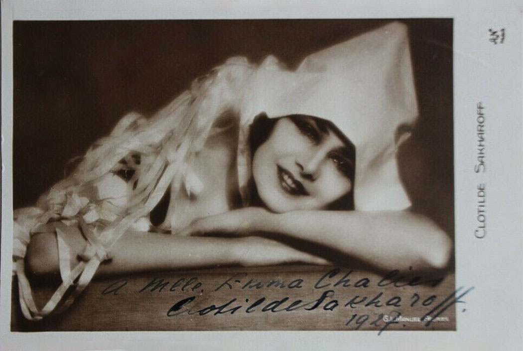 Clotilde Sakharoff – Clotilde Von Derp. Autographe, photo dédicacée, 1927 (AN – postcard) | src eBay