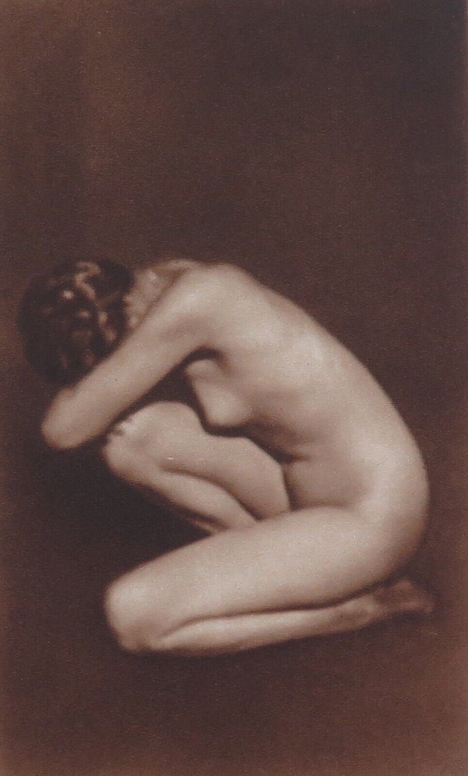 The first edition was printed on at least two different types of tissue, one limp and thin, and the other stiff and parchment-like. Dodge published many subsequent editions with Hanscom’s photographic illustrations, in at least three smaller sizes, all with halftones, sometimes in color. In a 1912 edition, Blanch Cumming, another San Francisco photographer, was inexplicably also credited, although no additional illustrations appeared. In 1906, the San Francisco earthquake and fire destroyed Hanscom’s entire studio, including her Rubaiyat negatives. A decade later she provided similarly dreamy illustrations for an edition of Elizabeth Barrett Browning’s Sonnets from the Portuguese, but her Rubaiyat images represent most of Hanscom’s print legacy, as her silver prints are rare. [quoted from the Art of the Photogravure]