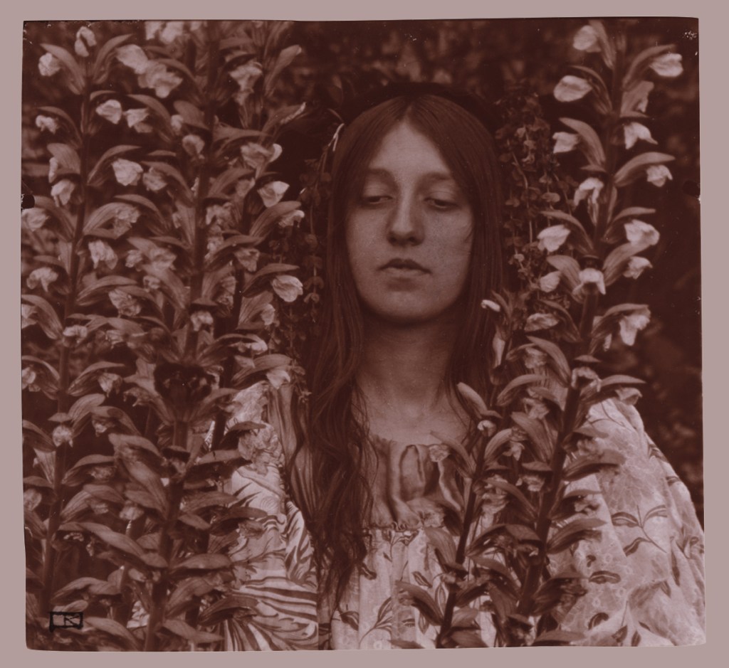 Young Woman among Flowers Robert Demachy :: Junge Frau zwischen Blumen (Young Woman among Flowers), 1898. Pigmentdruck. | src MK&G ~ Museum für Kunst und Gewerbe (Hamburg)
