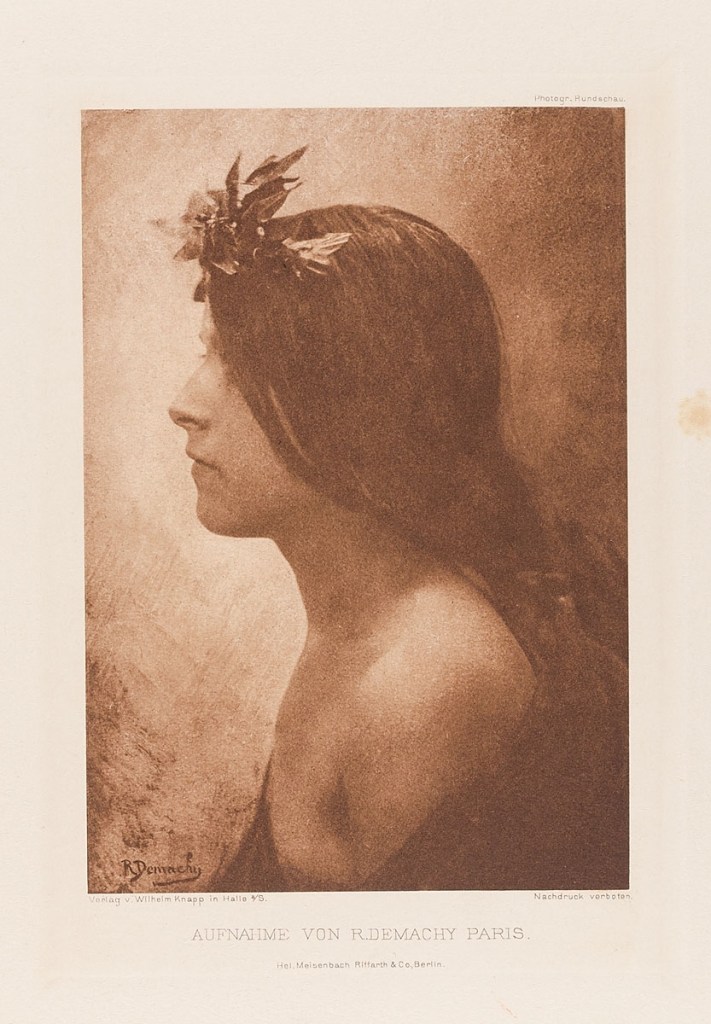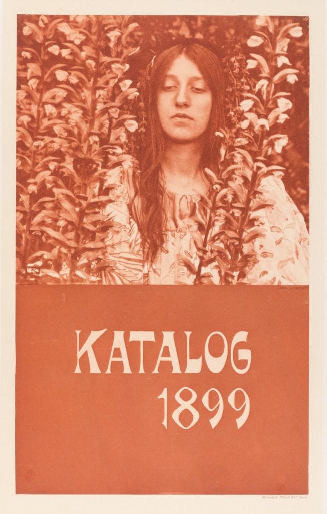 Katalog 1899 (front cover) Robert Demachy :: Katalog 1899 (Junge Frau zwischen Blumen). Heliogravüre. (Druckerei / Drucker/in: Meisenbach, Riffarth & Co.) | src MK&G ~ Museum für Kunst und Gewerbe (Hamburg)