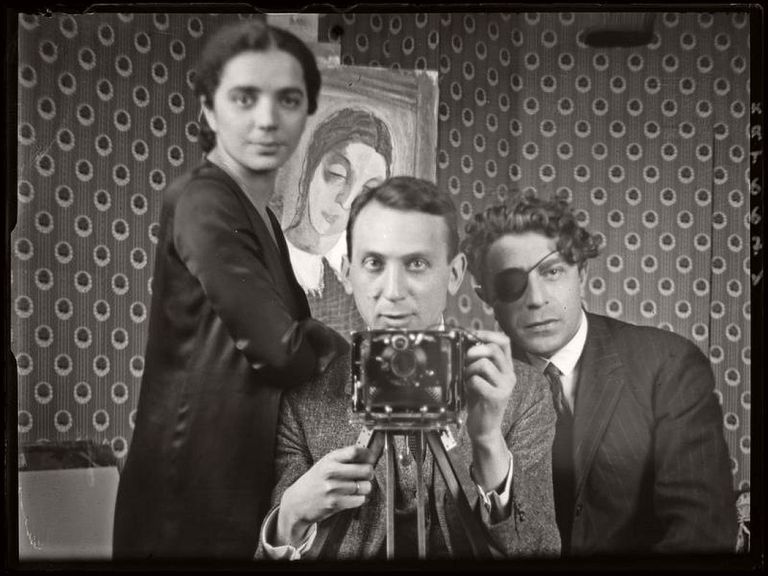 André Kertész :: Self-Portrait with Rogi André (Rózsa Klein) and unidentified friend, Hôtel des terrasses, Montmartre, Paris, 1926. | src James McArdle