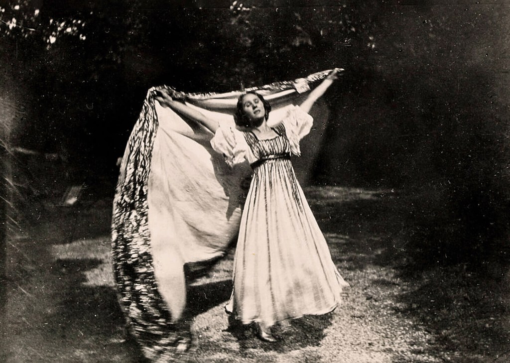 Die Tänzerin und die Marionette Rudolf Jobst :: Grete Wiesenthal tanzt (im Kostüm aus „Die Tänzerin und die Marionette“) in Weigl’s Dreherpark, Wien, 1907. | src Wien Museum