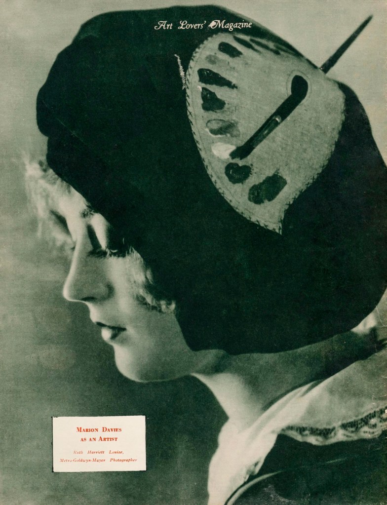 Ruth Harriet Louise :: Marion Davies as an artist. Art Lovers Magazine, Dec. 1925 issue (Back cover). Published monthly by Art Publications, Inc. | src internet archive