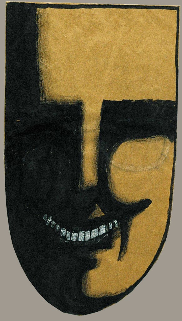 Saul Steinberg :: Mask. Ink and crayon on brown paper bag, 1959-1962. | src Steinberg Foundation