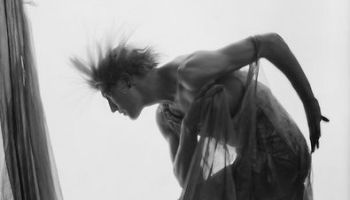 The beautiful picture next depicts the German dancer Leni Riefensthal as she appears in the great VfA film Der Heilige Berg (The Holy Mountain). The dancer has the not so easy task of emphasizing her own beauty next to the natural splendor that the scenery from the Alps offer in the strange film. | src Scenen (1927) at Projekt Runeberg