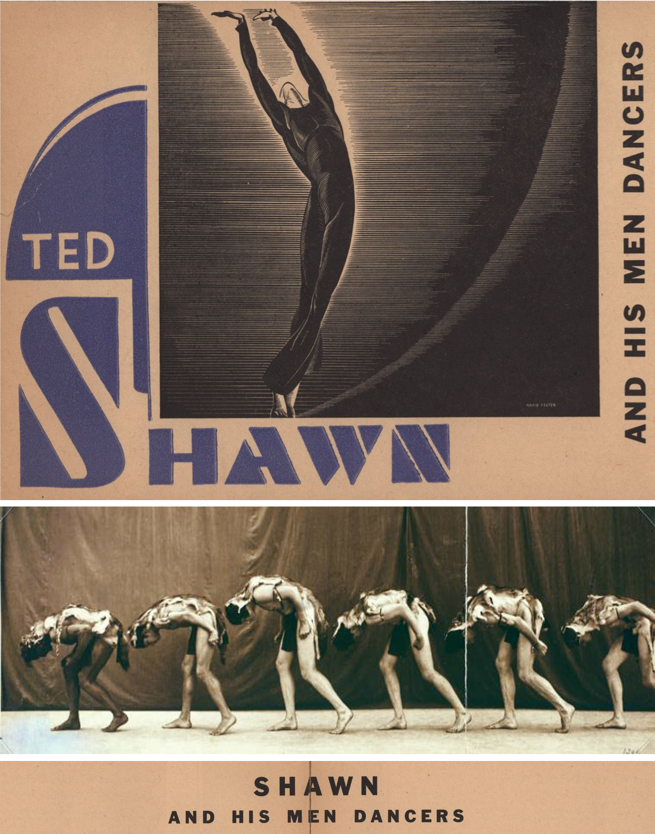 Ted Shawn and His Men Dancers. Season 1935-1936. [photo: Shawn’s men dancers in Wolf Dance (used later in his ballet Feather of the Dawn) by Putnam and Valentine, Los Angeles, 1918 (src NYPL) | src Iowa University Libraries