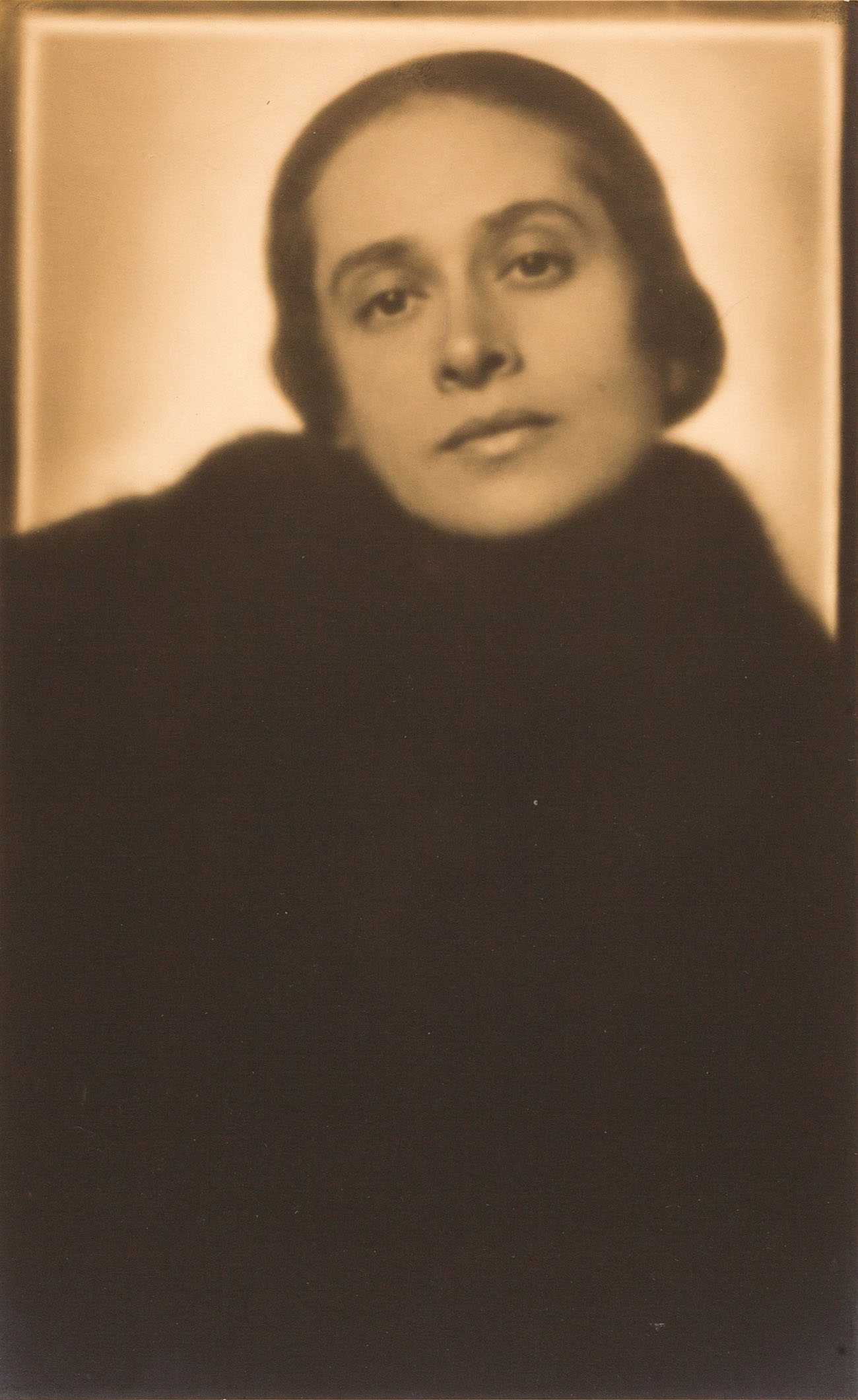 Seltenes Porträt der berühmten Wiener Fotografin, in deren Atelier Brandl arbeitete. Fleischmann war, wie man heute sagt, eine gute “Netzwerkerin”, die ihre Kundenkontakte und Freundschaften auch mit der Veranstaltung von Kostümfesten in ihrem Atelier pflegte. Es ist anzunehmen, dass sie dieses Porträt in einer Garderobe für einen solchen Anlass zeigt.