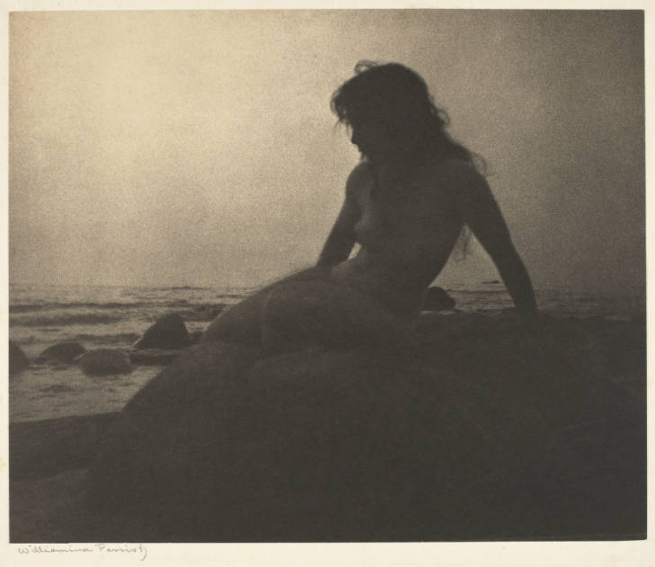 Nude on rock by the sea, 1915 The Parrish Sisters :: Nude woman sitting on rock by the sea. Signed: Williamina Parrish, undated (1915). | src Grace and Williamina Parrish Photograph Collection at SLPL