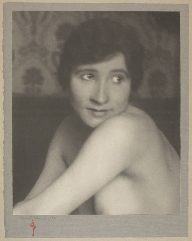 Portrait of a (nude) woman, 1913 Grace Parrish :: Portrait of a (nude) woman showing face and shoulders. Signed: Grace Parrish, 1913. | src Grace and Williamina Parrish Photograph Collection, SLPL