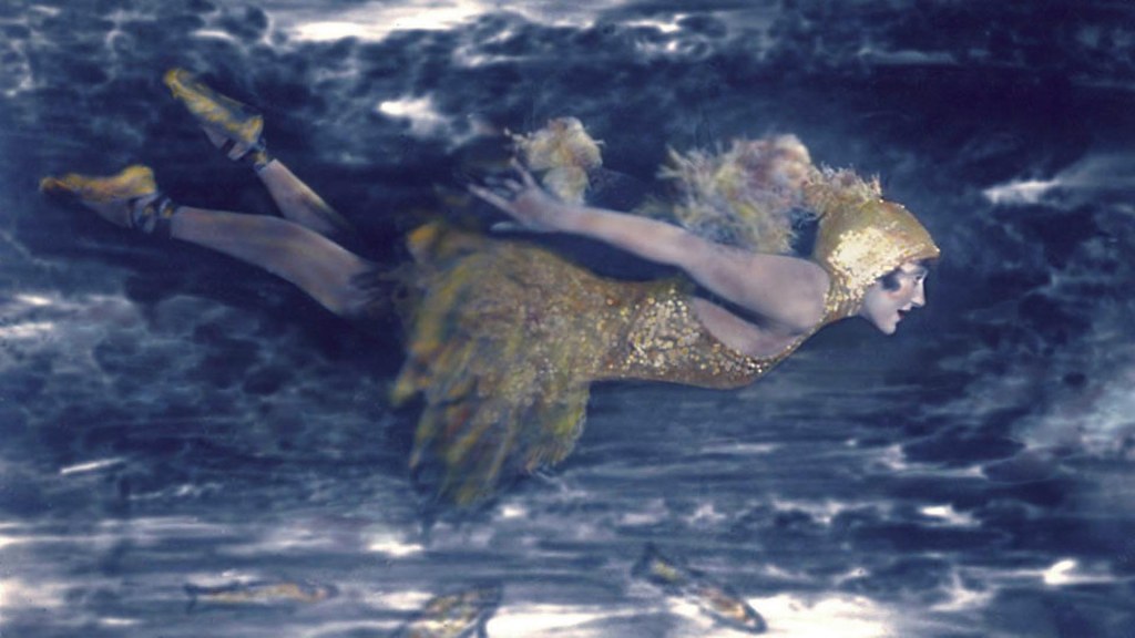 Hand-tinted publicity image of Kellerman. Annette Kellerman says she never needed a stunt double in any of her films. She also talks about her infamous swim in a pool full of crocodiles on the shoot for the silent feature A Daughter of the Gods (Herbert Brenon, USA, 1916). The Bill Fox she refers to is film’s producer William Fox. Link to interview from 1974, here. | src NFSA