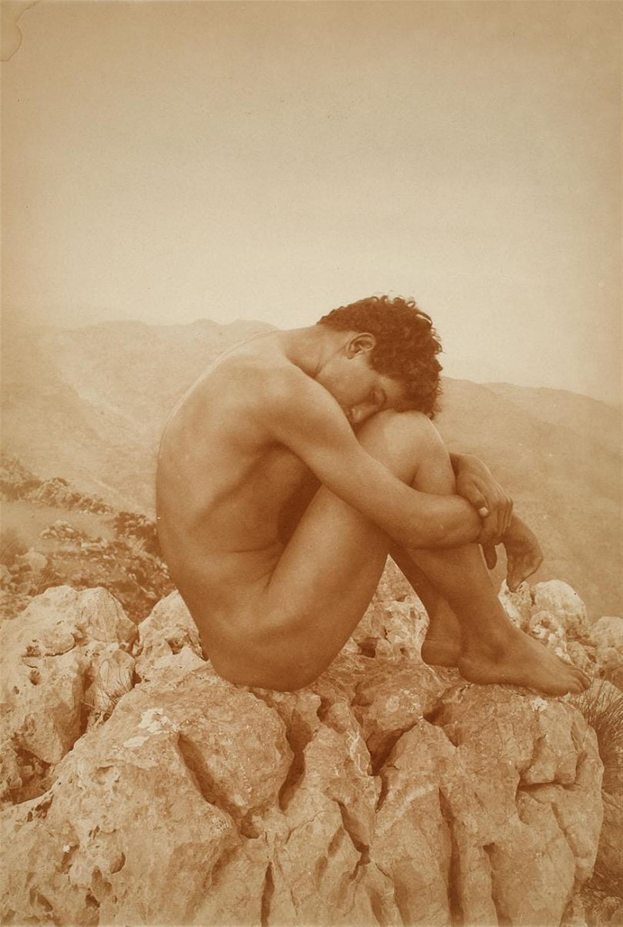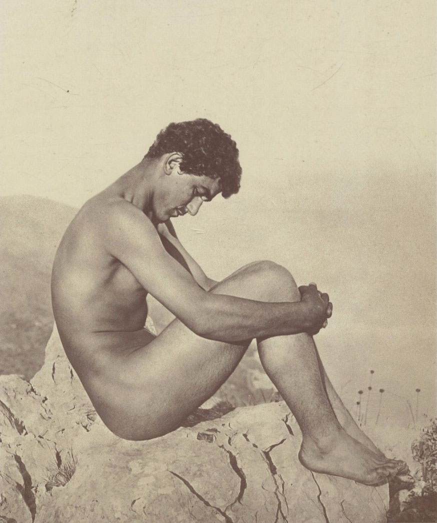 Wilhelm von Gloeden (1856–1931) ~ ‘Cain’, Taormina, Italien, ca. 1900. Gummidruck | src LempertzWilhelm von Gloeden (1856–1931) ~ ‘Cain’, Taormina, Sicily, ca. 1900. Photogravure (1923) | src LempertzWilhelm von Gloeden (1856–1931) ~ ‘Cain’, Taormina, Italy, ca. 1902. Albumen print (1913) | src Ostlicht AuktionenBaron Wilhelm von Gloeden (1856–1931) ~ Caino, Taormina, ca. 1900 | src Germann AuktionenCover photo of: Gloeden, Wilhelm von, L’arte di Gloeden. Il barone fotografo, Malambrì, Taormina 1979Hippolyte Flandrin (1805-1864) ~ Jeune homme nu assis sur le bord de la mer (aka Étude de nu), 1836. Oil on canvas | src Louvre