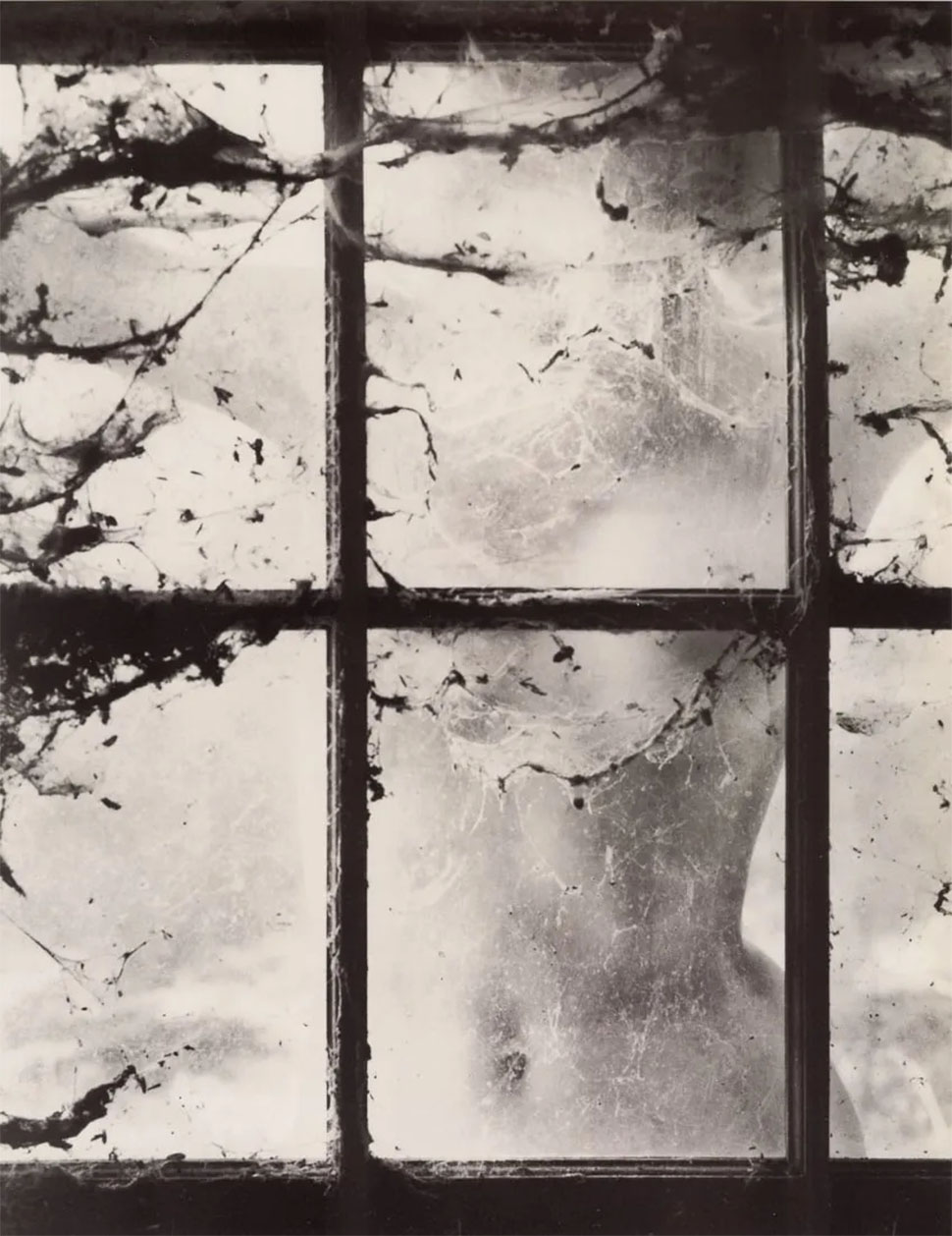 Wynn Bullock ~ Nude behind Cobwebbed Window, 1955 | src after image gallery, also on liveauctioneers