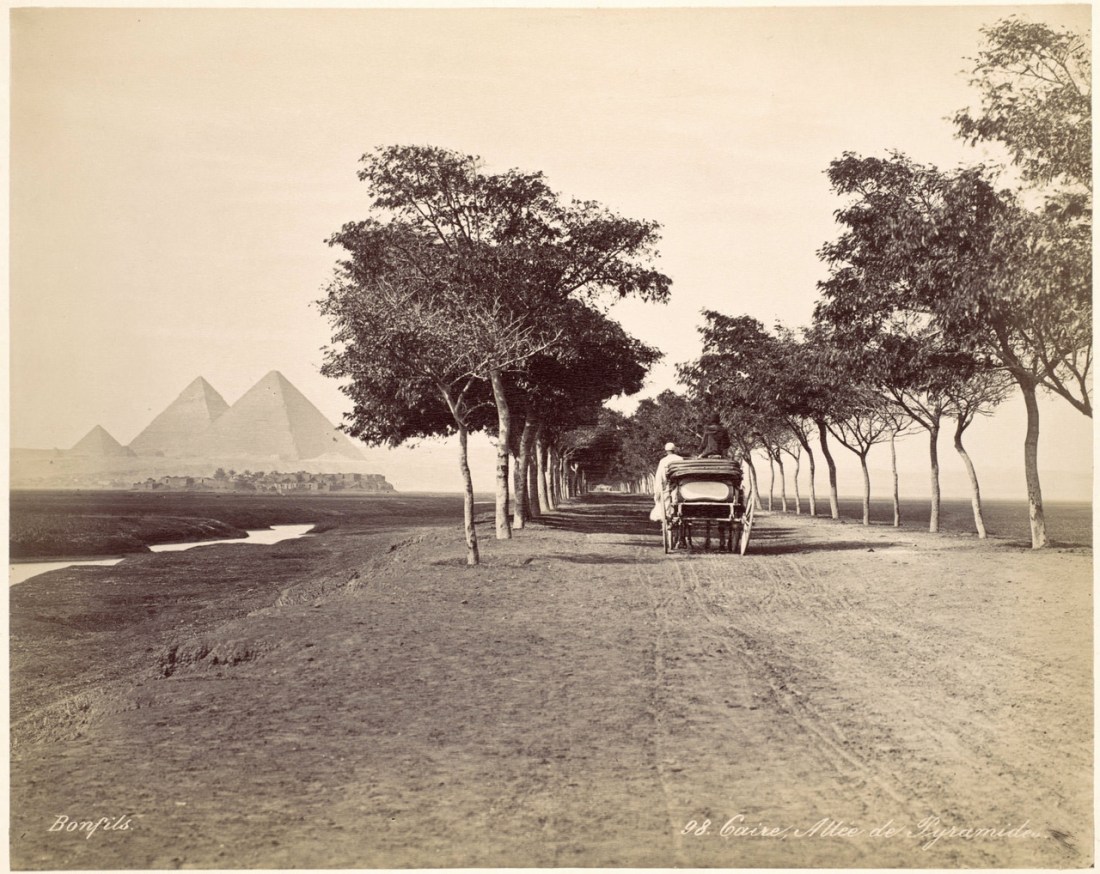 George Washington Wilson :: The Dhuloch Avenue, Inverary, 1870. Albumen print. [Photograph of an avenue of trees in Inveraray under which a man stands in left side profile] / source: Royal Collection Trust