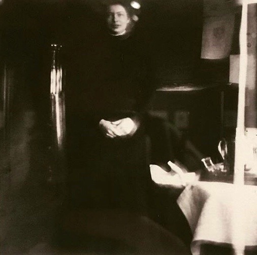 Clarence Leroy Andrews :: The Father of the Glaciers (Snowman at Summit, 1902. Waggoner, Muir and Howe, written on low margin), Muir Glacier, Alaska, 1902. | src University of Oregon Digital Libraries