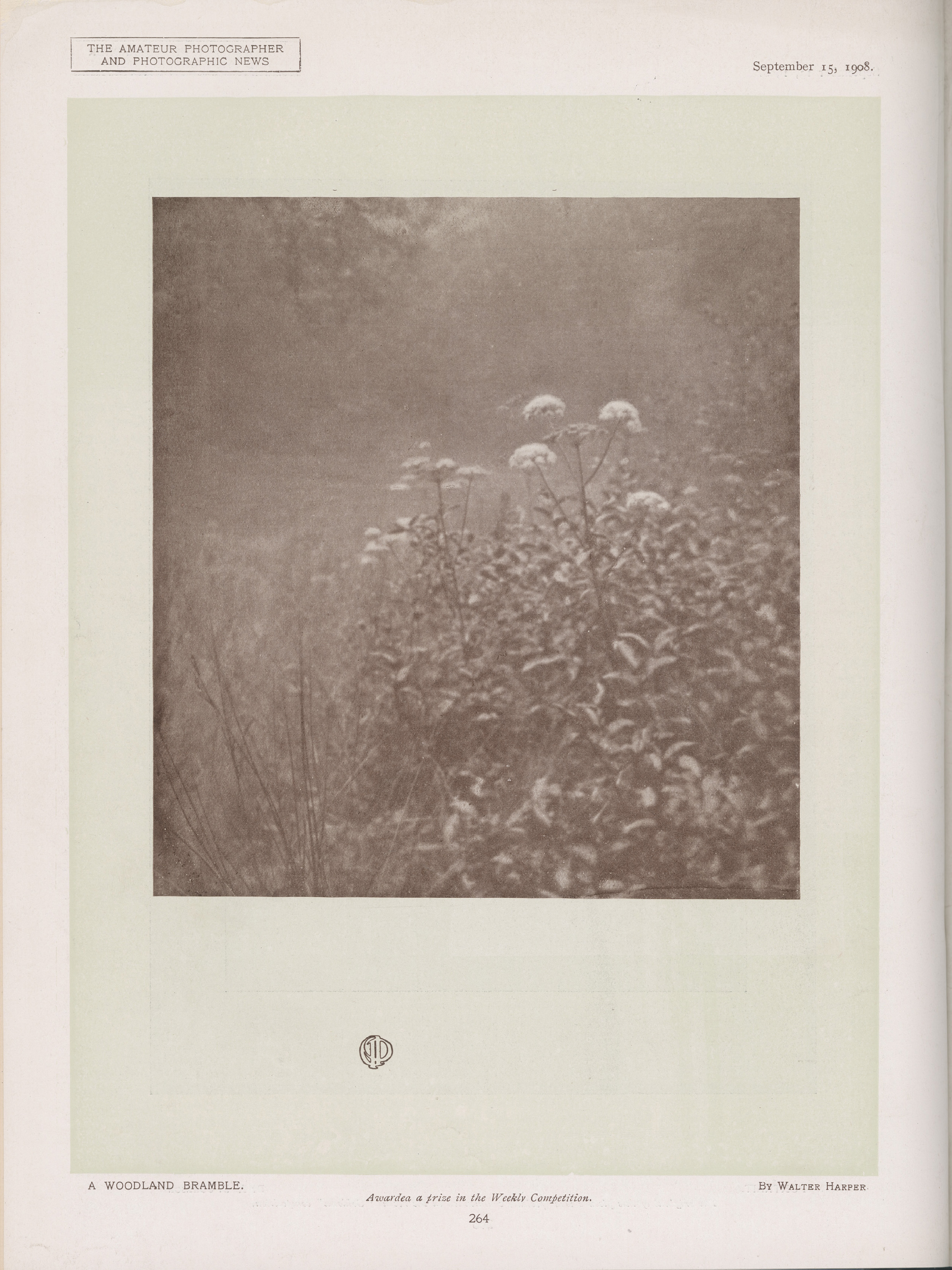 Nelson Walter Harper :: A Woodland Bramble, 1908. Published in The Amateur Photographer & Photographic News, vol. XLVVIII, p. 264, Walter Harper, Nelson, awarded a prize in «The A.P.» Weekly Competition. | src and high resolution Musée Nicéphore Niépce