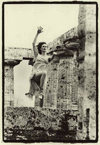 Steichen’s camera, and, in his autobiography, he described their session which produced more interesting results: “She was a living reincarnation of a Greek nymph. Once, while photographing the Parthenon, I lost sight of her, but I could hear her. When I asked where she was, she raised her arms in answer. I swung the camera around and photographed her arms against the background of the Erechtheum.”’