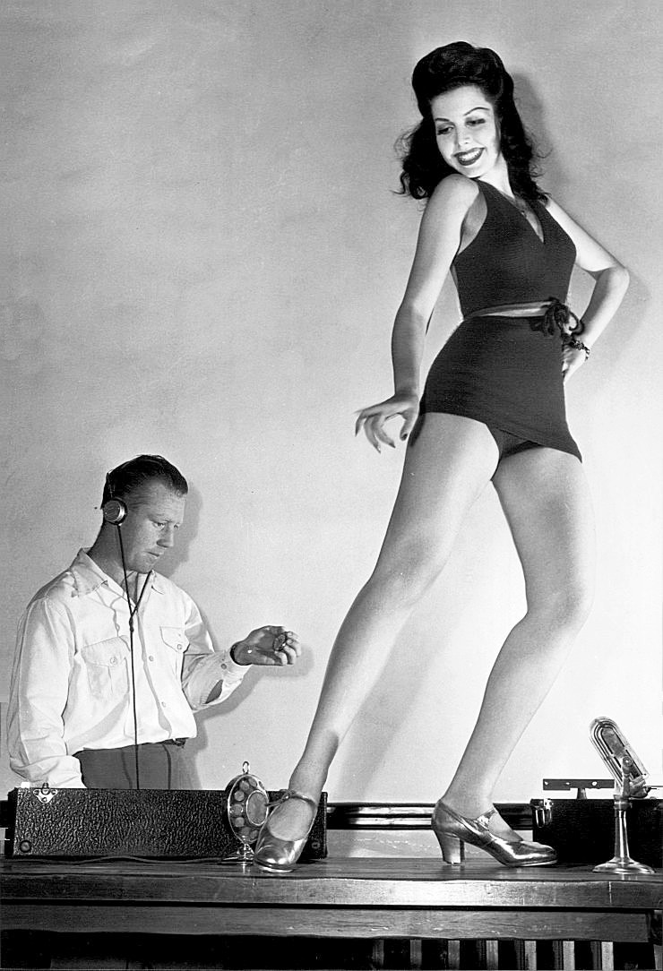 Ann Miller recording the sound of her taps for the soundtrack of Reveille With Beverly (Charles Barton, 1943) / via