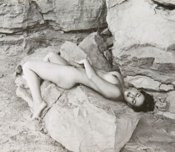 André de Dienes :: Nu aux rochers / Nude with Rocks, 1952. Vintage gelatin silver print / src: gros-delettrez