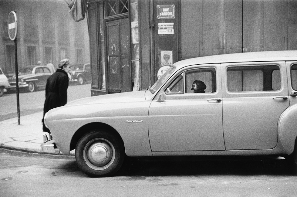 Diane Arbus :: Girl with a pointy hood and white schoolbag at the curb, NYC, 1957 / source: Satoshi Hirose on Twitter