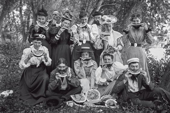 forest, the slices of watermelon create a huge smile. / source: Bettmann