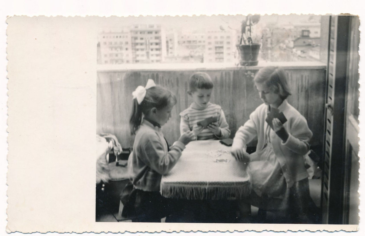 Children playing cards in a balcony, undated. Vintage snapshot. / via punlovsin