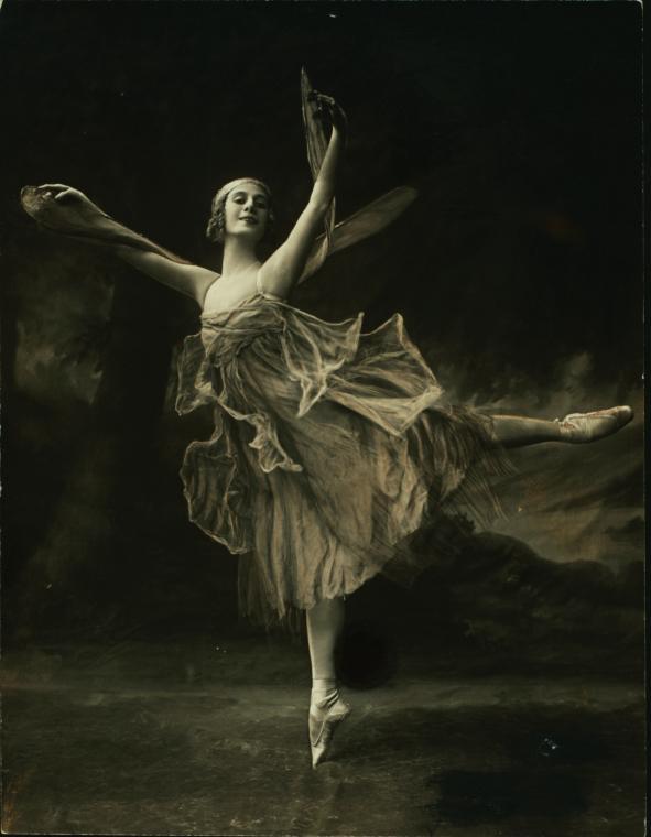 Photograph of Anna Pavlova in one of her most distinctive solo dances, The Dragonfly, ca. 1925. Photographer unknown. / source: the.royal.ballet