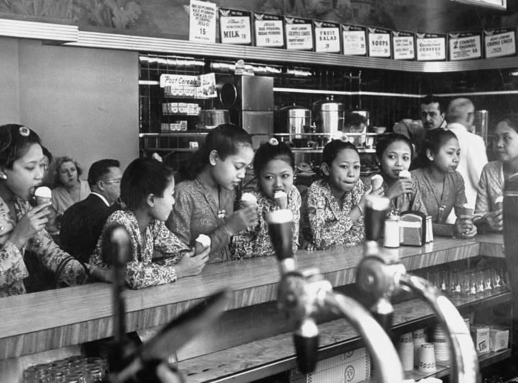 Gordon Parks :: Balinese dancing girls eating ice cream, 1952 [Life magazine]