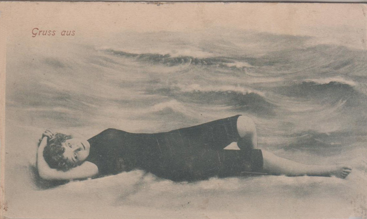 Bather at the beach, 1912. Vintage postcard. | src: Del Campe