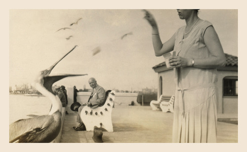 Woman feeding a pelican, ca. 1940s [as a follower made us note, the lady’s dress looks more like from 1920s so, maybe, the snapshot was misdated, or her outfit simply outdated]. Pigment print on Hahnemule paper | src Life as Art: The American Snapshot