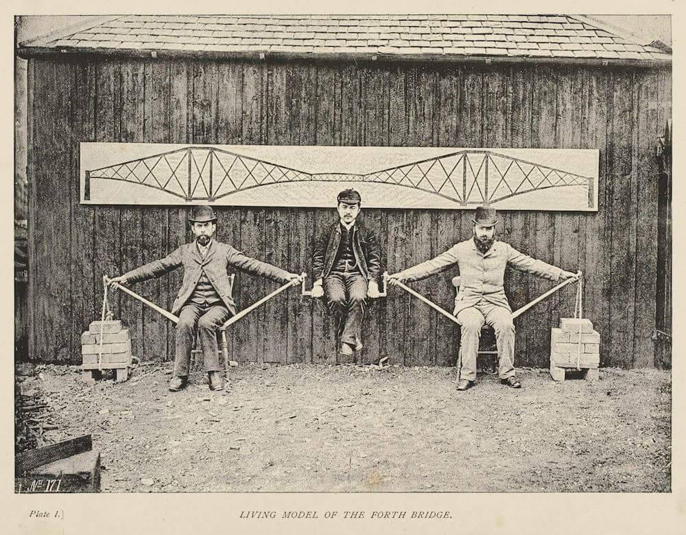 Benjamin Baker :: “Living Model of the Forth Bridge.” Human Cantilever Illustration (Bridging the Firth of Forth), 1887 / via lasmicrofisuras
