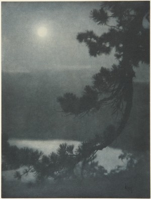 Francis Orville Libby (1883–1961) :: Pine Branch and Moon, 1921 [probably New England]. Multiple gum process printed in blue. source: artmuseum.princeton.edu