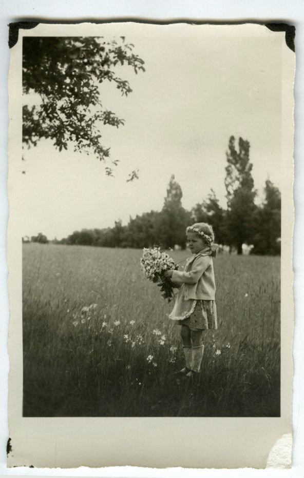 Girl (wearing a flower crown) collecting wild flowers in a field of flowers./ src: punlovsin