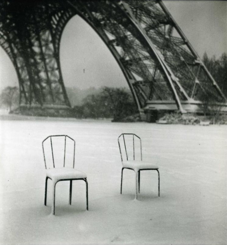 We’d like to think it’s a tribute by a mysterious «Guido» to the master Kertész, even if in 1950 his photographs weren’t yet famous… Kertész arrived in Paris in 1925 and photographed the chairs at the Tuileries during his early years as an apprentice. He moved to New York in 1936. | text quoted from auction house Senigallia