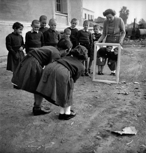 Voula Th. Papaioannou :: Mirror at the guest house courtyard of NEF, Krioneri, Greece, 1946 / src: Benaki Museum