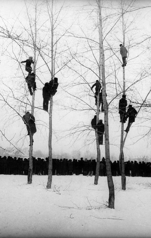 Mikola Gnisyuk :: People in Trees (The Rooks Have Arrived), 1964. Courtesy of Lumiere Brothers Center for Photography, Moscow. via typepad.com / via