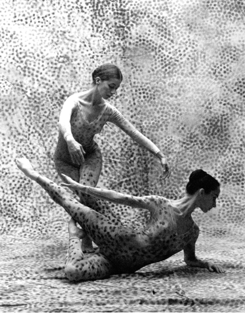 :: Carolyn Brown and Viola Farber, of Merce Cunningham Dance Company, perform “Summerspace,” in 1958 [Set and costume design by Robert Rauschenberg] / src: The New Yorker
