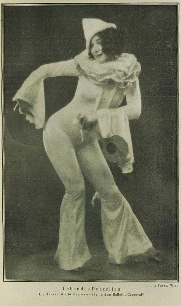 Lebendes Porzellan. Die Tanzkünstlerin Zeperovitz in dem Ballett Carneval. Foto: Fayer (Wien). Revue des Monats B.1 H.4, Februar 1927
